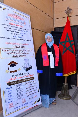 ناقشت الباحثة والأديبة نزيهة اليدالي الحسن أطروحة الدكتوراه بكلية الشريعة التابعة لـ جامعة سيدي محمد بن عبد الله، حيث حصلت على درجة الدكتوراه بمرتبة مشرف جدًا مع التوصية بالنشر، وسط إشادة علمية واسعة بمستوى البحث وأصالت
