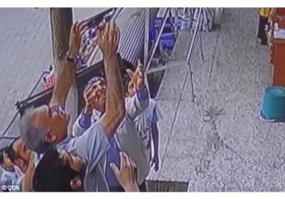 #المقطع الذي يحبس الأنفاس التقطته إحدى الكاميرات المثبتة في الشارع. ولم تذكر الصحيفة ما إذا كانت الشرطة تحقق في الحادث أم لا.