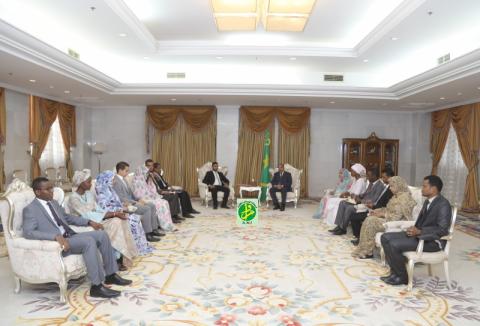وقد كان لقاؤنا بفخامة رئيس الجمهورية فرصة للاستماع إلى نصائحه وعرض أهم المواضيع المطروحة الملحة على الشباب الموريتاني والحلول المقترحة لها.وقد أعطى فخامة الرئيس التوجيهات والنصائح المناسبة للمجلس لحل المشاكل المطروحة وكان اللقاء ممتازا نشكر فخامة الرئيس عليه"