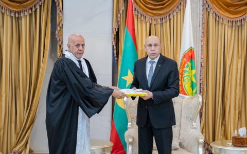 شهد القصر الرئاسي في نواكشوط، اليوم (الأربعاء)، مراسيم تسلم رئيس الجمهورية؛ محمد ولد الشيخ الغزواني، التقرير السنوي لمحكمة الحسابات، من رئيس المحكمة؛ حميد ولد أحمد طالب.