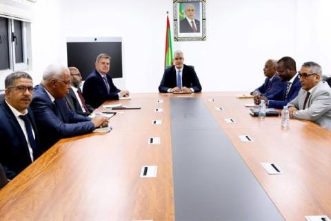 عقد وزير الزراعة والسيادة الغذائية؛ سيد احمد ولد أبوه، اليوم (الخميس)، لقاء في قاعة الاجتماعات بمقر الوزارة، مع بعثة من البنك الدولي برئاسة جان كريستوف، المسؤول عن مشروع دعم التنمية والابتكار في القطاع الزراعي بموريتانيا.