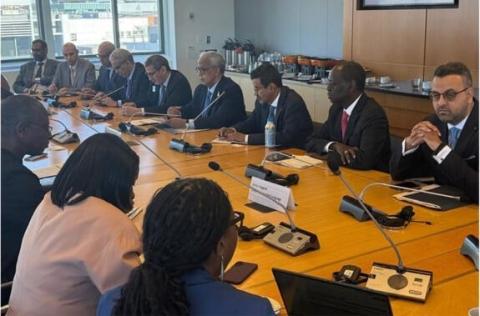 عقد وزير الشؤون الاقتصادية والتنمية؛ عبد الله ولد سليمان ولد الشيخ سيديا، رفقة الوفد الموريتاني المشارك في الاجتماعات السنوية لمجموعة البنك الدولي وصندوق النقد الدولي المقدة في واشنطن، الجمعة، جلسة عمل موسعة مع نائب رئيس مؤسسة التمويل الدولية المكلف بإفريقيا؛ إيتيوبيس تافارا، وذلك بحضور الممثلة المقيمة للمؤسسة في موريتانيا؛ أليس أودراگو وعدد من كبار معاوني نائب الرئيس.