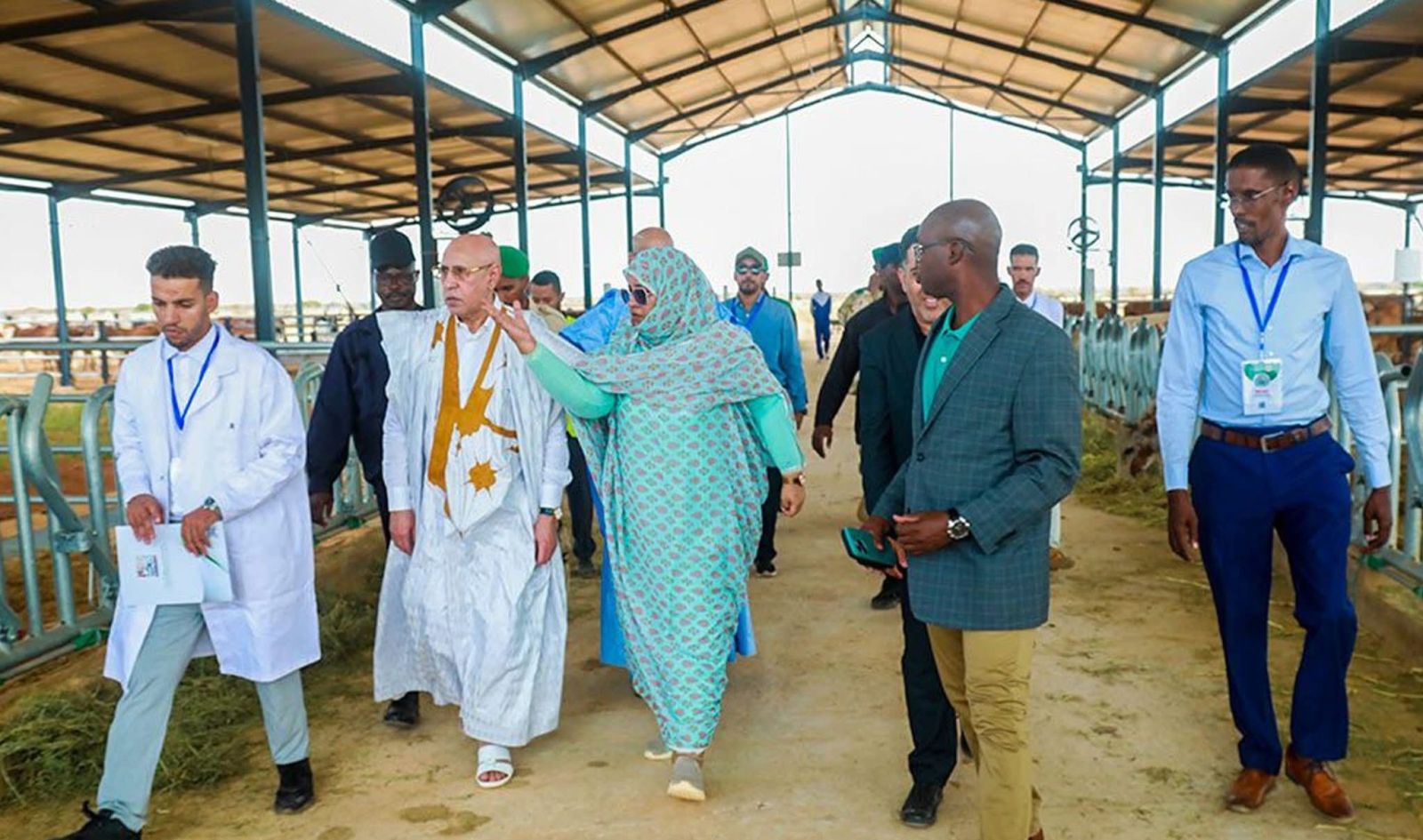 و في سياق متصل أدى رئيس الجمهورية، محمد ولد الشيخ الغزواني، أمس الجمعة، زيارة تفقدية للمزرعة العصرية المندمجة لإنتاج الحليب وزراعة الأعلاف بمنطقة "البهكه" التابعة لمقاطعة النعمة، حيث كانت المديرة العامة للشركة الموريتانية للمنتجات الحيوانية السيدة فاطمة فال بنت اصوينع