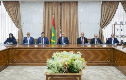 عقد فخامة رئيس الجمهورية السيد محمد ولد الشيخ الغزواني اليوم اجتماعا مطولا مع ولاة مختلف ولايات الوطن، خصص لمتابعة قرارات الاجتماعات السابقة وتقييم أداء الإدارة الإقليمية والمحلية، وقياس نوعية الخدمات المقدمة للمواطنين، كما مكن من الاطلاع على مستوى تقدم تنفيذ السياسات العمومية على المستوى المحلي في إطار البرنامج الرئاسي "طموحي للوطن" خاصة منها البرنامج الاستعجالي لتعميم النفاذ إلى الخدمات الأساسية بعد أن أطلقه مؤخرا فخامة رئيس الجمهورية من ولاية الحوض الشرقي.