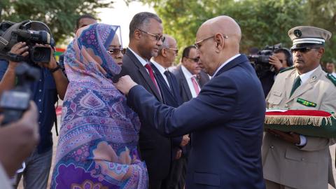 وسط ارتياح كبير داخل أوساط الأسرة الدبلوماسية الموريتانية، وشح رئيس الجمهورية محمد ولد الشيخ الغزواني ، اليوم الجمعة في باحة القصر الرئاسي بنواكشوط السفيرة الموريتانية في إيطاليا السيدة خديجة أمبارك فال بوسام فارس من نظام الاستحقاق الوطني