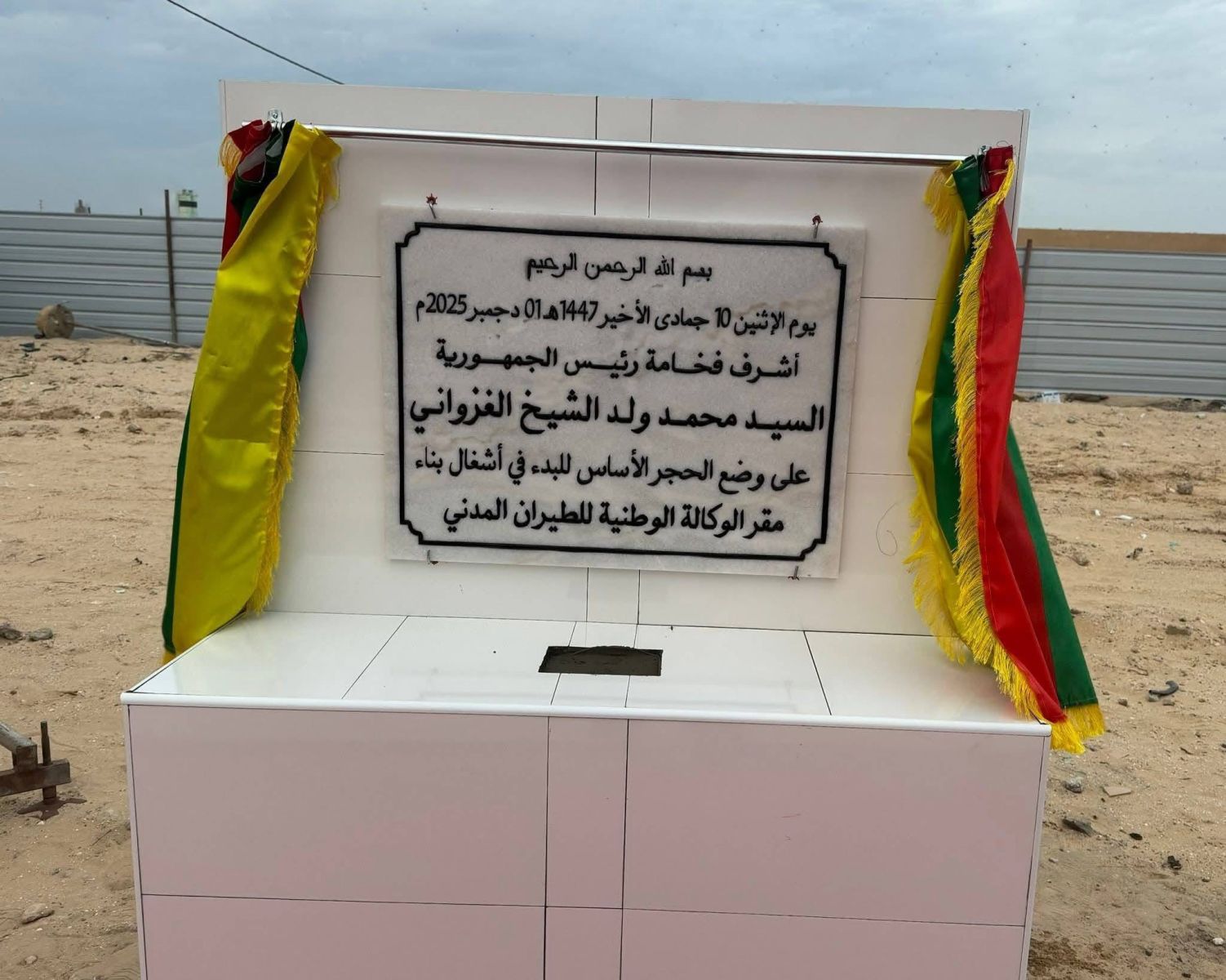 أشرف رئيس الجمهورية، السيد محمد ولد الشيخ الغزواني، مساء اليوم في نواكشوط، على وضع حجر الأساس للمقر الجديد للوكالة الوطنية للطيران المدني، في خطوة تؤسس لمرحلة حديثة في تطوير البنية التحتية المنظمة لقطاع الطيران في البلاد.