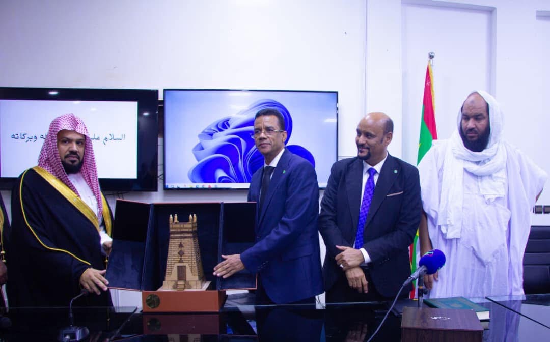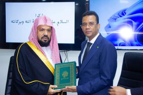 وقد رحب الوزير في كلمته الترحبية بالضيف الكريم مبرزا مكانة المدينة المنورة والمسجد النبوي الشريف وأئمة الحرمين لدى المويتانيين، متسعرضا بعضا من أوجه التعاون بين البلدين الشقيقين تحت قيادة قائدي البلدين فخامة رئيس الجمهورية السيد محمد ولد الشيخ الغزواني وخادم الحرمين الشريفين الملك سلمان بن عبد العزيز.