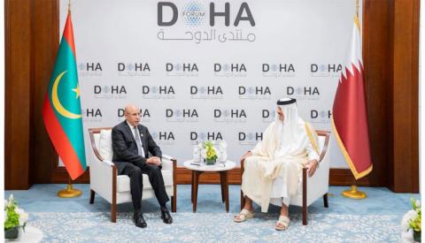 التقى رئيس الجمهورية السيد محمد ولد الشيخ الغزواني، صباح اليوم السبت في العاصمة القطرية الدوحة، الشيخ تميم بن حمد آل ثاني، أمير دولة قطر، وذلك على هامش الدورة الثالثة والعشرين لمنتدى الدوحة 2025.