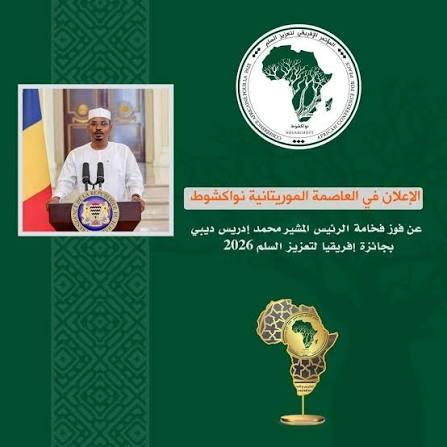 في حدثٍ قاريٍّ بارز، أعلن المؤتمر الإفريقي لتعزيز السلم اليوم عن قرار لجنة جائزة إفريقيا للسلم، بمنح جائزتها لعام 2026 لفخامة الرئيس المشير محمد إدريس ديبي، رئيس جمهورية تشاد، وذلك تقديرًا لسياساته الرائدة في ترسيخ السلم الأهلي، وتعزيز الاستقرار والتضامن الإنساني.