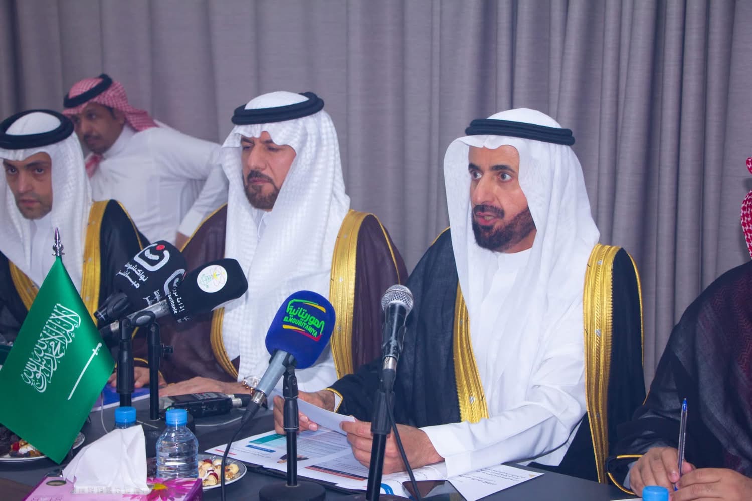 وزير التوجيه الإسلامي رحب في مستهل كلمة له بالمناسبة بمعالي الوزير والوفد المرافق له مبرزا جونب مضيئة من العلاقات الثنائية المتميزة القائمة بين البلدين الشقيقين والتى تتعزز يوما بعد يوم بإرادة قائدي البلدين فخامة رئيس الجمهورية السيد محمد ولد الشيخ الغزواني وجلالة الملك سلمان بن عبد العزيز وولي عهده الأمير محمد بن سلمان، وأوضح معالي الوزير أن هذه العلاقات ضاربة بجذروها في عمق الدين والثقافة والوجدان، حيث ظل ارتباط الشناقطة ببلاد الحرمين الشريفين ارتباطا صادقا راسخا نابعا من مكانتها السامية في العقيدة والقلوب.