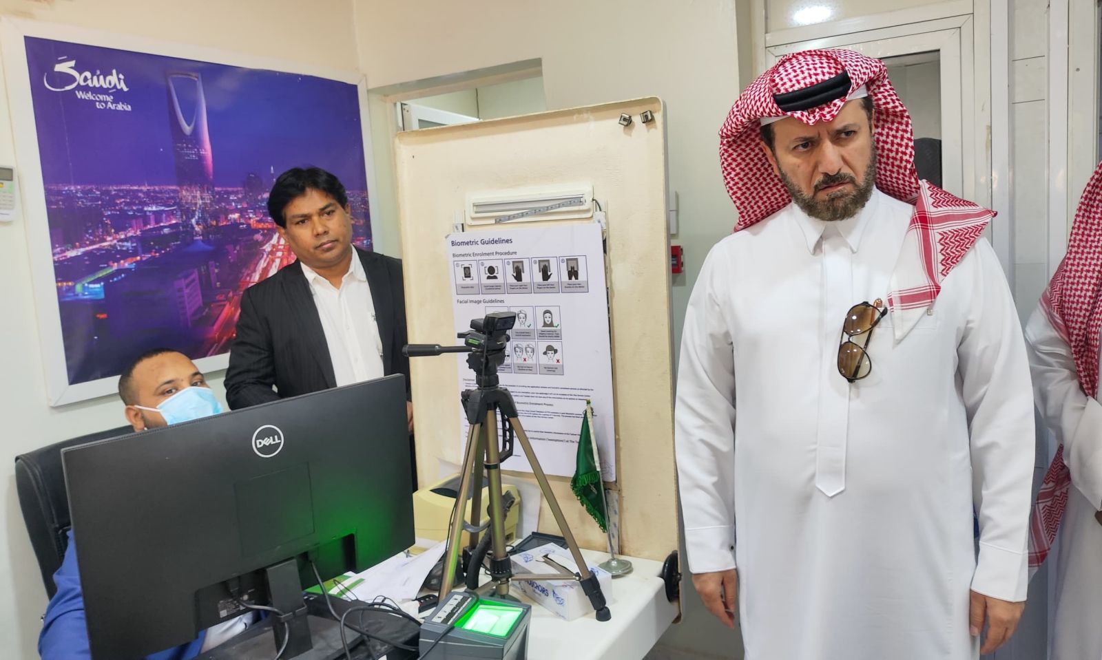 أدى سعادة السفير السعودي في موريتانيا، الدكتور عبد العزيز بن عبد الله الرقابي، أمس الخميس زيارة مفاجئة إلى مقر شركة “تسهيل البصمة” في نواكشوط، وهي الجهة المسؤولة عن إجراءات البصمة البيومترية لطلبات التأشيرات السعودية.