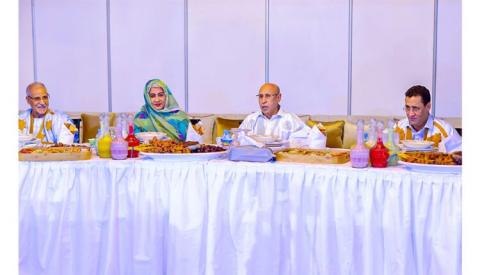 وحضرت حفل الإفطار السيدة الأولى، الدكتورة مريم محمد فاضل الداه، كما حضره الوزير الأول، السيد المختار ولد أجاي، ورئيس الجمعية الوطنية، ورئيس المجلس الدستوري، ورئيس مؤسسة المعارضة الديمقراطية، والوزير المكلف بديوان رئيس الجمهورية، والوزيران المستشاران برئاسة الجمهورية، وأعضاء الحكومة.