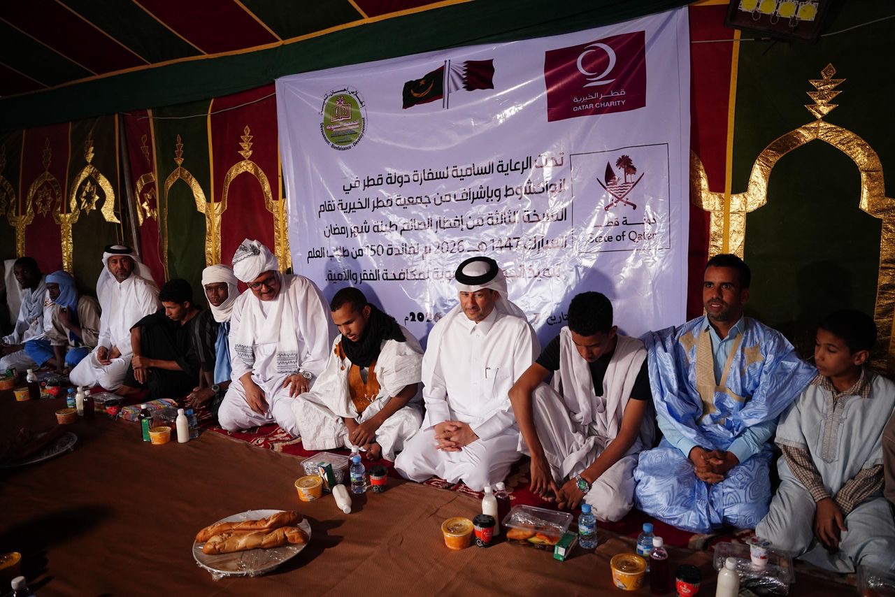 افتتحت سفارة دولة قطر في موريتانيا الأربعاء الموافق 25/02/2026م توزيع أربعة آلاف وخمسمائة وجبة غذائية على طلاب المحاظر في موريتانيا طيلة شهر رمضان المبارك، وذلك تحت إشراف مكتب قطر الخيرية وتنفيذ الجمعية النسوية لمكافحة الفقر في موريتانيا.
