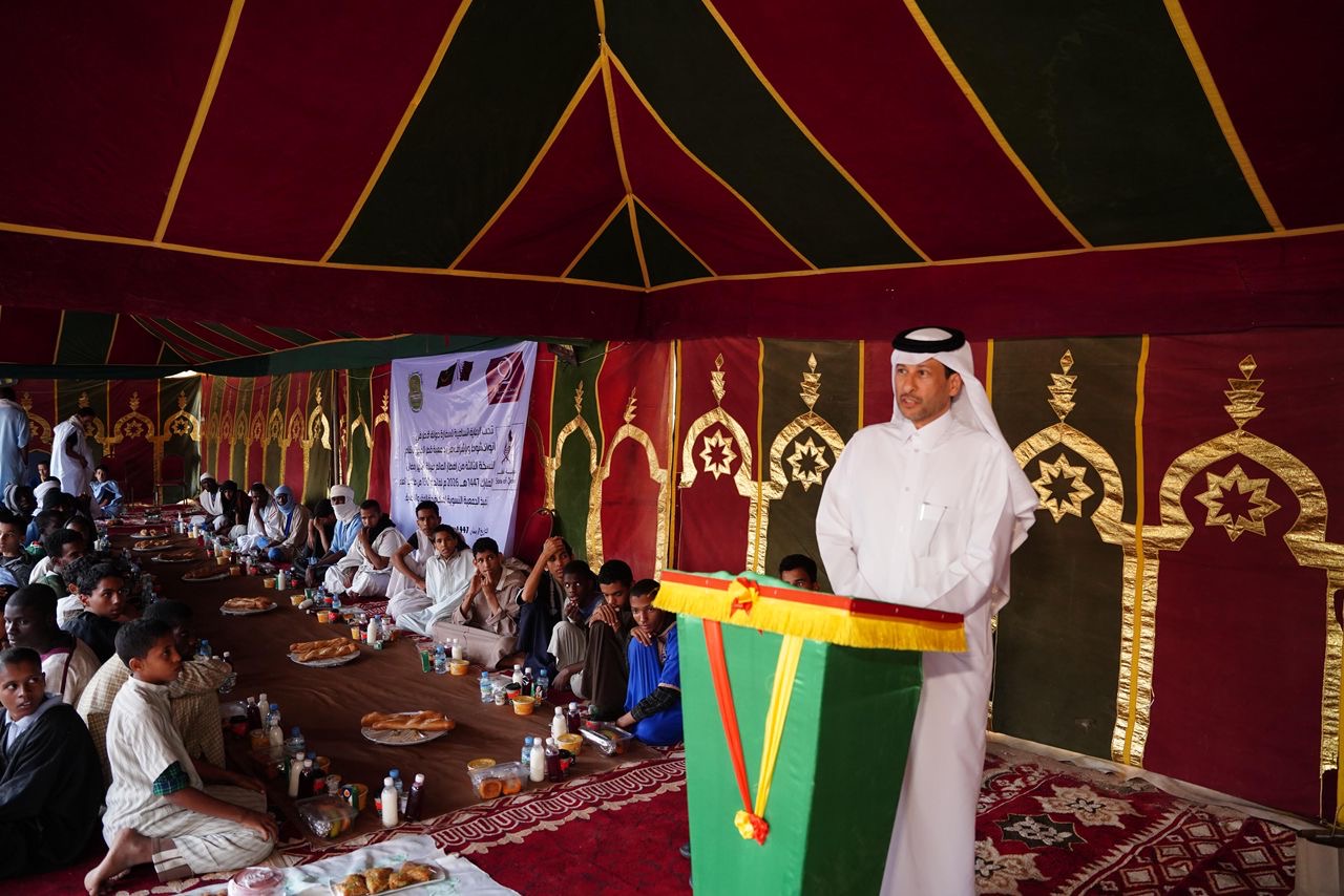 سعادة السفير القطري السيد شاهين بن علي الكعبي رحب بالحضور و عبر عن سعادته وسروره بالإشراف على تدشين انطلاقة الإفطار السنوي الذي تنظمه السفارة، والذي يستفيد منه هذا العام طلاب محظرة التيسير لتعليم القرآن الكريم في مقاطعة عرفات طيلة شهر رمضان المبارك، وشكر سعادة السفير السلطات الإدارية و مكتب قطر الخيرية في موريتانيا والجمعية النسوية على تعاونهم من أجل تنفيذ هذا المشروع.