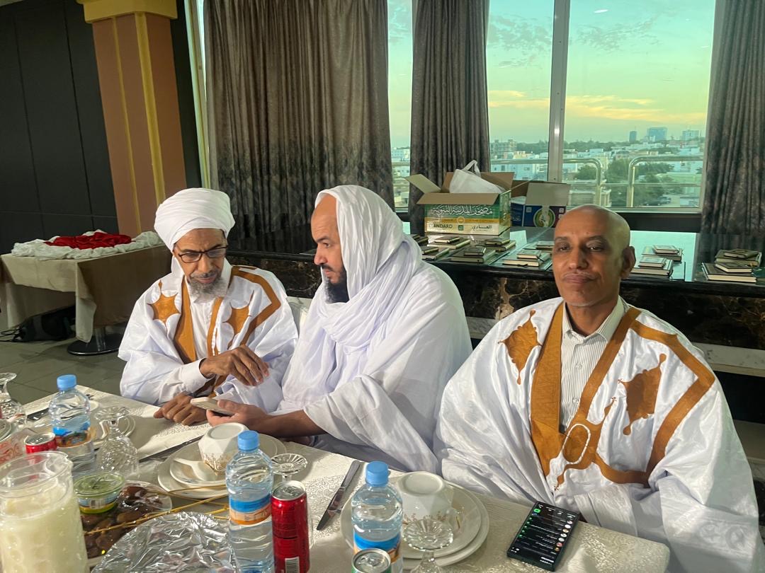 وقد شمل الإفطار كلمة توجيهية قدمها فضيلة الشيخ المفتي أحمدو ولد لمرابط شرح فيها المقاصد الشرعية من الصيام وأثره في نفوس المسلمين، كما قدم الدكتور ابراهيم ولد اليزيد مداخلة حول كيف كان السلف يودعون الشهر الكريم بالعبادة والحفاظ على أخلاق الصوم.. وقد حضر الإفطار شخصيات من بينها أمين عام رابطة العلماء الموريتانيين الشيخ ولد صالح، والنائب الشريف ولد محمد لمام، ومدير المعهد العالي للدراسات والبحوث الإسلامية الدكتور محمد ولد الرباني، ومدير جامعة المحظرة الشنقيطية الدكتور تقي الله ولد الطالب جدو، وعميد كلية الآداب بجامعة نواكشوط العصرية محمد فال ولد ببانا، ومدير الأوقاف محمد ولد عبد الله، ونقيب الصحفيين أحمد طالب ولد المعلوم، وعدد من أعضاء الرابطة والمثقفين والاعلاميين.