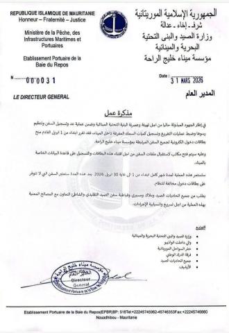 وجاء في مذكرة عمل صادرة اليوم الثلاثاء 31 مارس 2026، موقعة من طرف المدير العام للمؤسسة، السيد مختار ملل جا، أن هذا الإجراء سيدخل حيّز التنفيذ ابتداءً من فاتح أبريل المقبل، مستهدفًا ضبط عمليات تفريغ الأسماك وتوثيق كمياتها بدقة، بما يرسخ مبادئ الشفافية ويعزز فعالية الرقابة داخل الميناء.