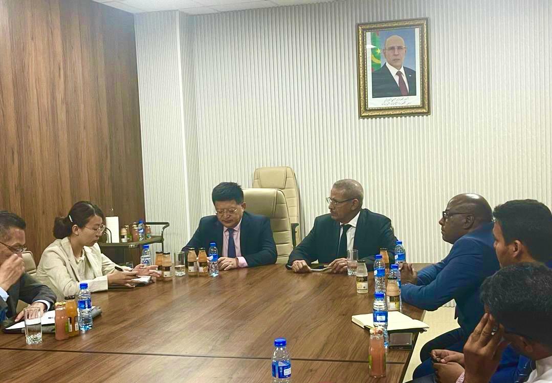 استقبل المدير العام لميناء نواكشوط المستقل، السيد لمرابط بناهي، محاطًا بمعاونيه، سعادة سفير جمهورية الصين الشعبية لدى موريتانيا، السيد تانغ زونغ دونغ، مرفوقًا باثنين من معاونيه، وذلك في إطار زيارة رسمية تهدف إلى تعزيز علاقات التعاون بين الجانبين.