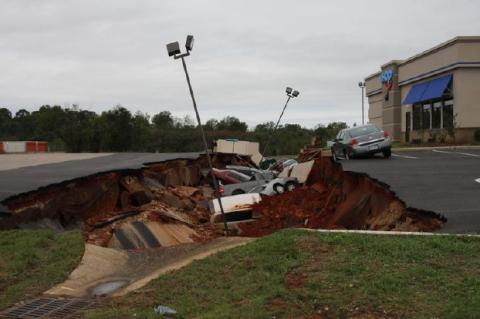 ذكرت صحيفة «ميريديان ستار» الأميركية في ولاية ميسيسبي، أن هبوطاً أرضياً في ساحة لانتظار السيارات ابتلع 12 سيارة.