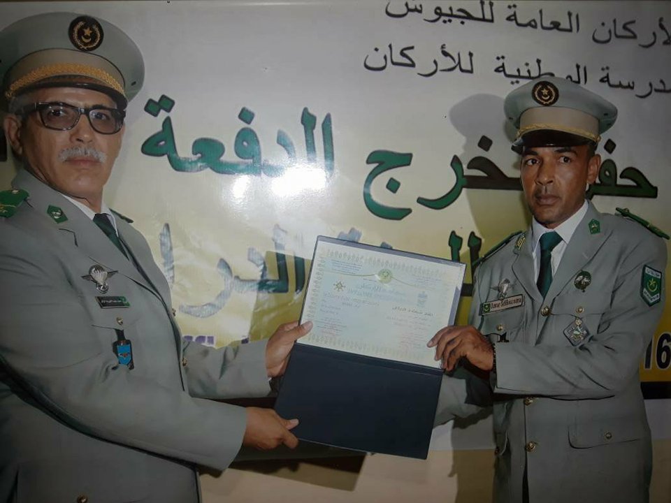وشح وزير الدفاع الوطني باسم رئيس الجمهورية زوال اليوم الأربعاء بميدان الاستعراض في القيادة العامة لأركان الجيوش الوطنية النقيب عمار ولد بوزومة قائد إحدى السرايا في كتيبة الدروع التي يقع مقرها بمدينة ألاك.
