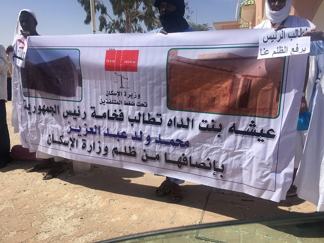 وتضيف المتضررة أنها ذهبت للوزيرة أمال بنت مولود التي أبلغتها بأن الأمر يتعلق بأوامر عليا يحب تطبيقها؛ وهو ما سبق لمسؤول التأهيل سيدي محمد ولد بيده أن قاله لها بالحرف الواحد؛ مبرزة أنها على قناعة بأن رئيس الجمهورية هو الذي أمر بمنح المواطنين قطعهم الأرضية التي يقيمون فيها ما لم تتعارض مع مخطط عمراني قائم؛ ولذا تناشده بالتدخل العاجل من أجل رفع الظلم عنها والذي تحمل الوزيرة بنت مولود وولد بيده كامل المسؤولية عنه.