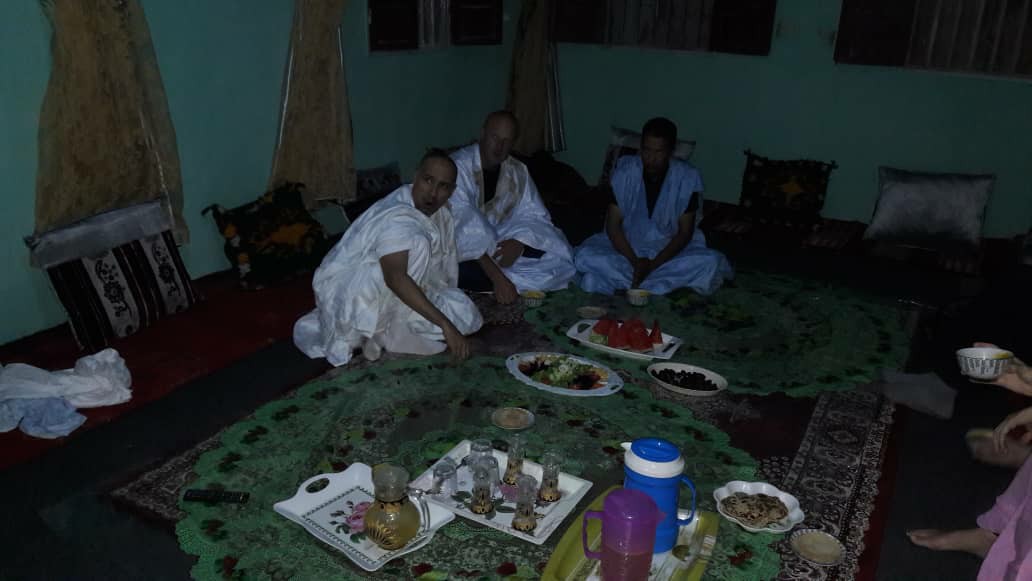 إنه المهندس محمدو ولد صلاحي...دارت أحاديث بين السجان والمسجون في لحظات مسروقة من ريب الزمان، وحاول كل من الطرفين استمالة الطرف الآخر، لكن عناية الله وتدبيره حاطت بالسجان حيث وفقه الخالق جل جلاله أن ارتدى حلة الإيمان معلنا شهادة .. شهادة أن لا إله إلا الله وأن محمدا رسول الله................. Steve Wood قبل يومين وخلال حديث لصحيفة the guardian البريطانية في نواكشوط قال إن السبب الأبرز لدخوله الإسلام هو ماشاهده من تمسك ذلك السجين بتعاليم دينه وأخلاقه تحت ظروف بالغة السواد...الآن وفي رمضان من العام 1439 تحقق بعض من أمنية محمدو الذي تمنى ذات لحظة في زنزانته أن يجلس مع من ورد ذكرهم في كتابه "يوميات غونتنامو" ليشربوا مع بعضهم كاسات من الشاي في جو طبيعي...اليوم يجلس الجندي الأمريكي Steve Wood (السجان السابق) مع صديقه (السجين السابق) في جو رمضاني مفعم بالإيمان والتسامح، فالحمد لله مستحق الحمد على ما أولى من النعم ...