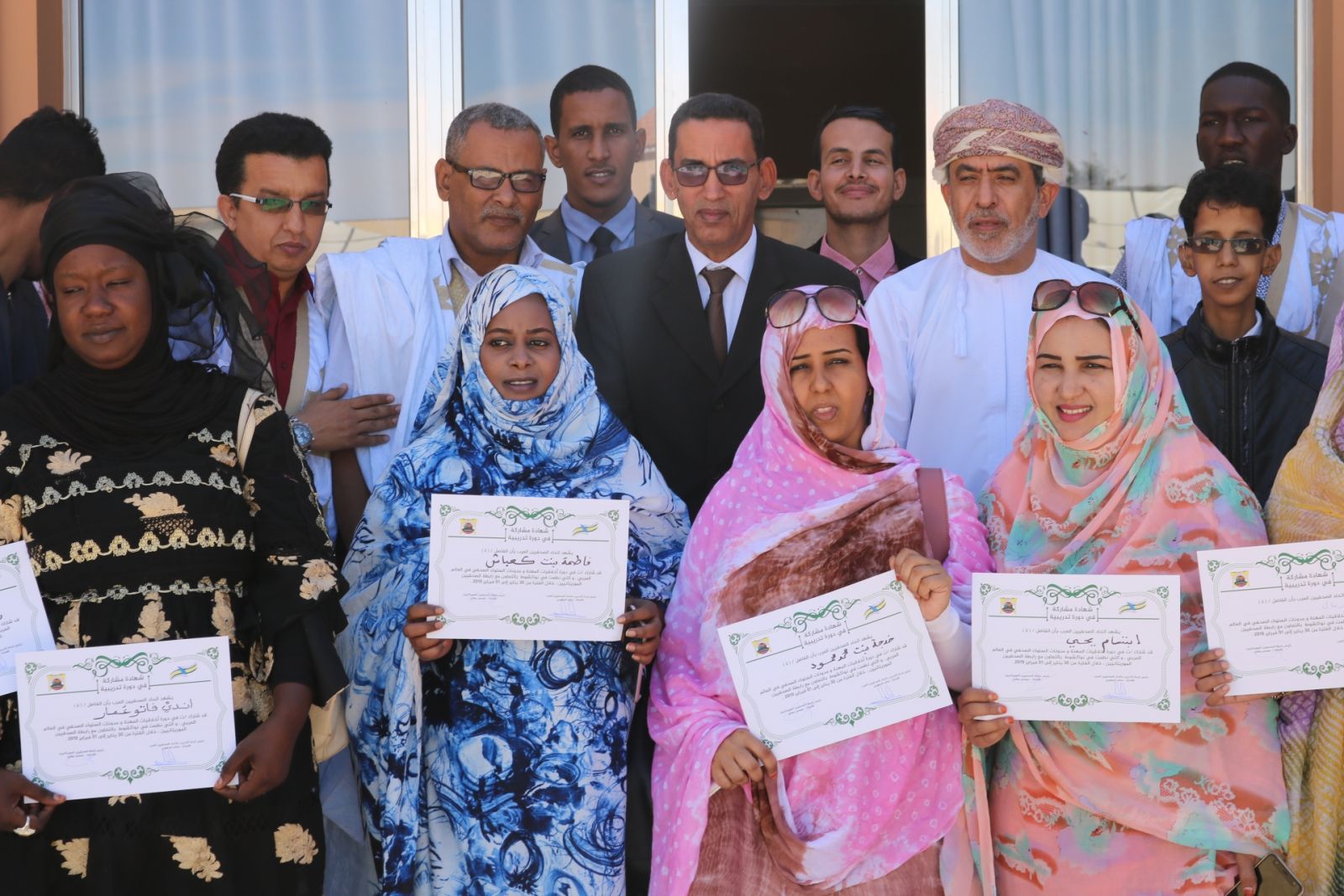 وفي نهاية حفل الختام الذي جرى بحضور كل من رئيس لجنة التكوين باتحاد الصحفيين العرب الأستاذ سالم الجهوري ؛ ورئيس رابطة الصحفيين الموريتانيين، موسى ولد بهلي، وزعت إفادات تكريم على الصحفيين الذين خضعوا للتكوين على مدى 3 أيام.