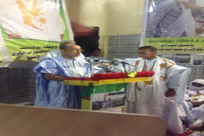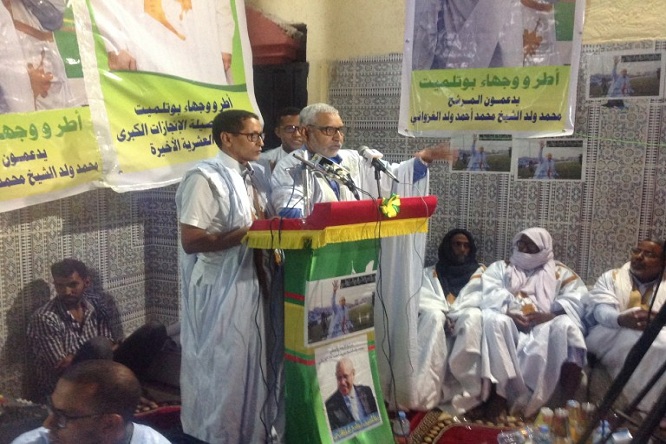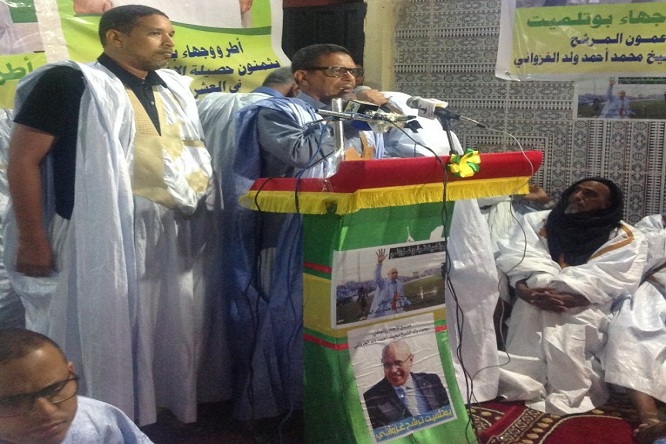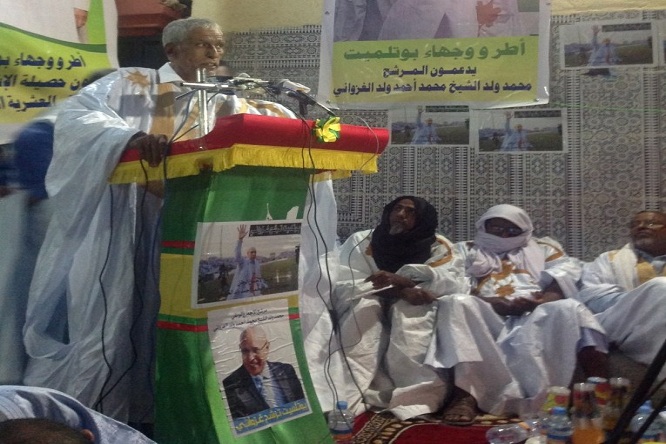 العمدة السابق لبلدية أبي تلميت المركزية السيد : محمد ولد الصادق القى الكلمة الرسمية للمجموعة وشركائها والتي كانت بمثابة الإعلان الرسمي لدعم المرشح وقد سلمت له نسخا منها وهذا نصها: