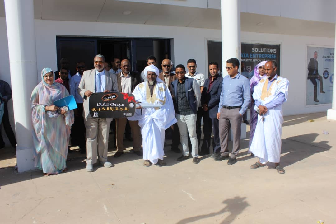 وتسلم حبيب الله ولد محمد الجائزة الكبرى أمام مقرها التجاري وبحضور مديرها العام سيف الدين عثمان عبد الرحيم والمدير التجاري طارق عبد السلام والمدير الاداري والمالي محمد احمد مصطفى وبعض من موظفي الشركة.