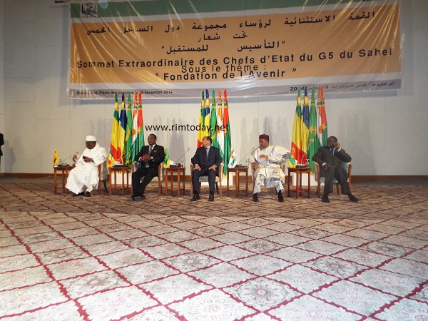 إفتتح رئيس الجمهورية ورئيس قمة مجموعة دول الساحل الخمس، السيد محمد ولد عبد العزيز صباح اليوم الجمعة بالمركز الدولي للمؤتمرات في نواكشوط، القمة الاستثنائية لمجموعة دول الساحل الخمس تحت شعار "التأسيس للمستقبل".