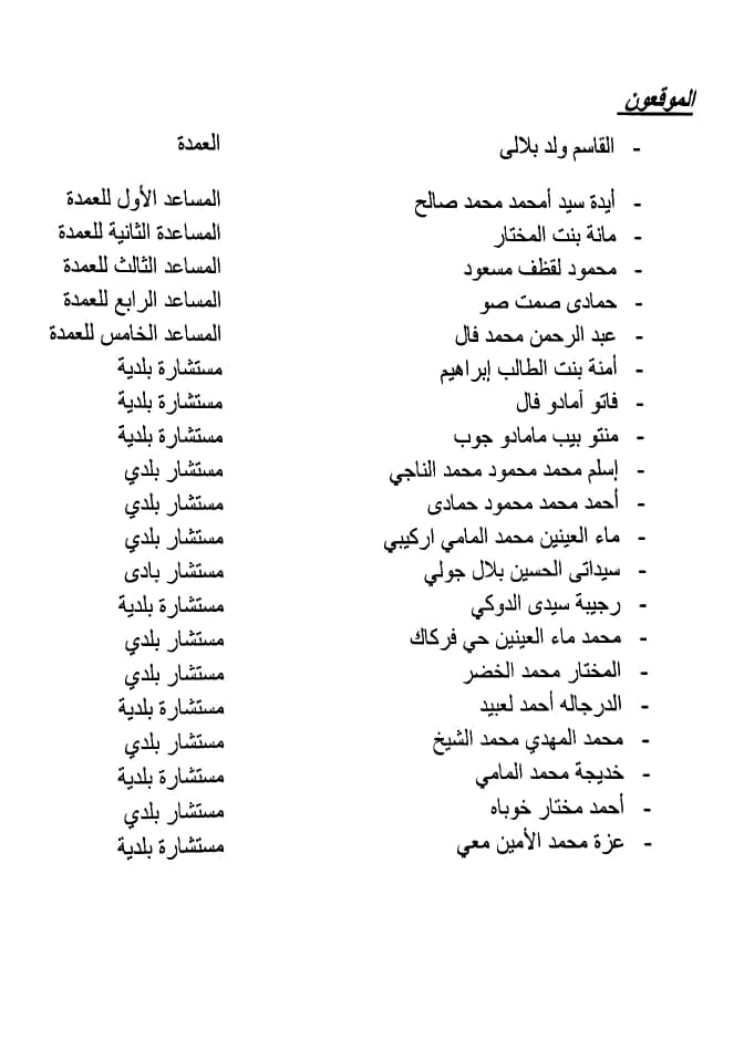 " نحن أعضاء المجلس البلدي لمدينة نواذيبو الموقعون أسفله، بعد التشاور والإطلاع على رأي أغلبية سكان المدينة نسجل النقاط التالية: