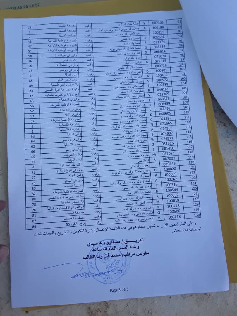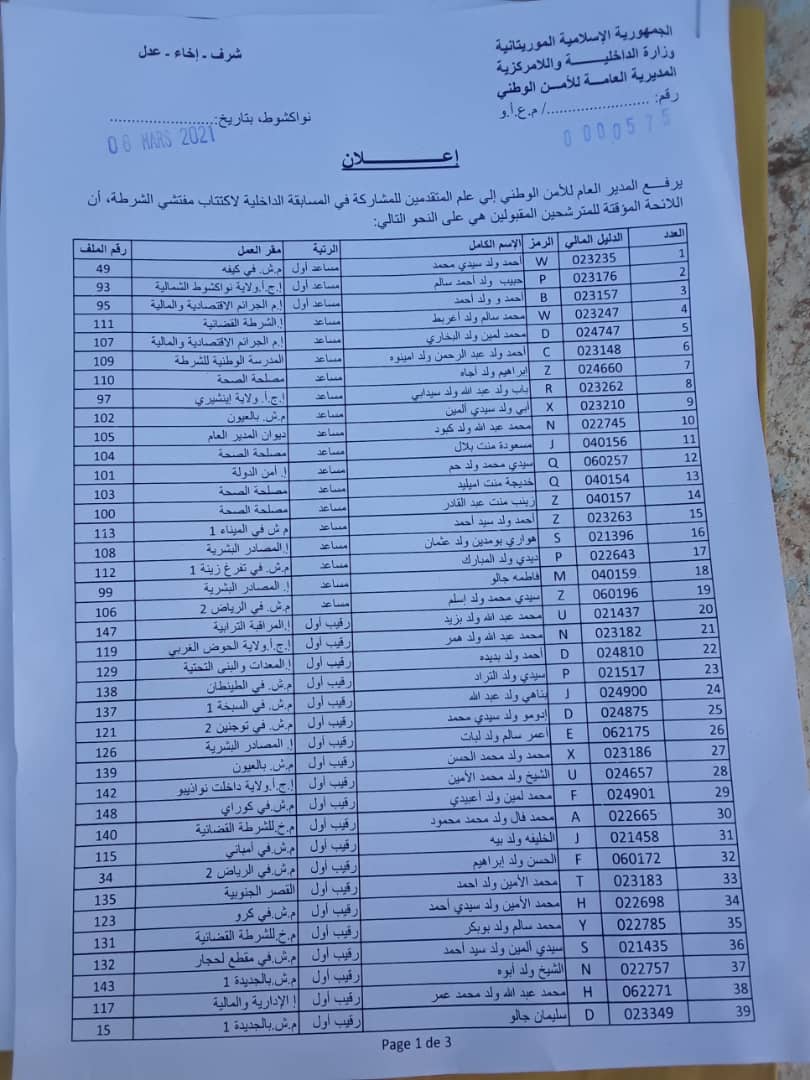 أعلنت الإدارة العامة للأمن الوطني اللائحة المؤقتة للمرشحين للمشاركة في المسابقة الداخلية لاكتتاب 30 مفتشا للشرطة. ونشرت الإدارة العامة عدة لوائح بأسماء المؤهلين للاكتتاب الذي أعلن في وقت سابق.