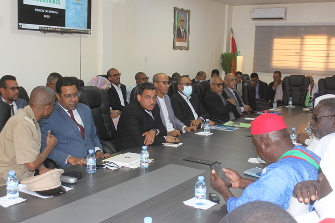 و قال الوزير إنه جاء إلى ولاية لبراكنة على رأس بعثة تضم كلا مستشارا برئاسة الجمهورية ومستشارا بالوزارة الأولى والمدراء المركزيين والمكلفين بمهام في القطاعات الخدمية الأساسية ذات صلة بالنسبة لحياة المواطنين؛ مثل التعليم، الصحة، المياه، الكهرباء، الزراعة، التجهيز والنقل، تمكين الشباب ومندوبية تآزر".