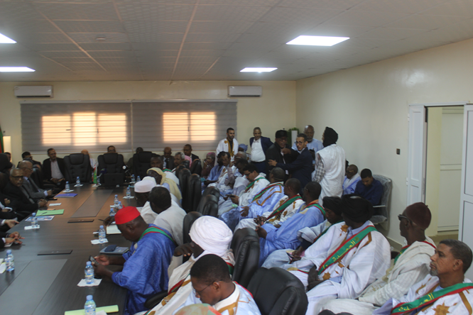 و فور وصوله عقد الوزير لقاء مع السلطات الإدارية و المنتخبين في مباني جهة لبراكنة .