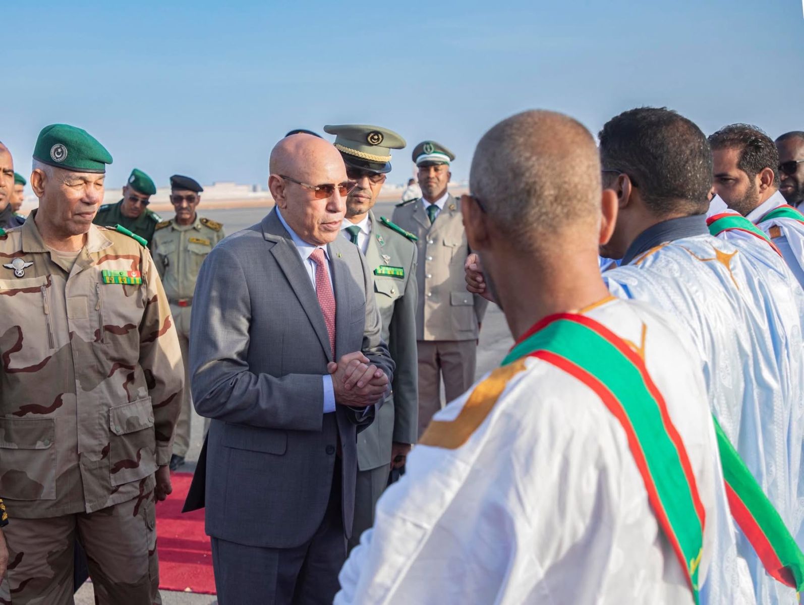واستُقبِل الرئيس ولد الشيخ الغزواني في المطار من طرف والي داخلت نواذيبو؛ ماحي ولد حامد؛ ورئيس سلطة منطقة انواذيبو الحرة؛ جاكانا إسحاق، ورئيس جهة داخلت نواذيبو؛ محمد المامي ولد أحمد بزيد، وقائد المنطقة العسكرية الأولى؛ العقيد أحمدو ولد الصايم، وحاكم مقاطعة نواذيبو؛ سيد أحمد ولد احويبيب، وعمدة بلدية نواذيبو؛ النائب القاسم ولد بلالي؛، والإداري المدير العام للشركة الوطنية للصناعة والمناجم (سنيم)؛ المهندس محمد فال ولد اتليميدي، ومديري موانئ داخلت نواذيبو، والمنتخبين والسلطات الإدارية والأمنية بالولاية.