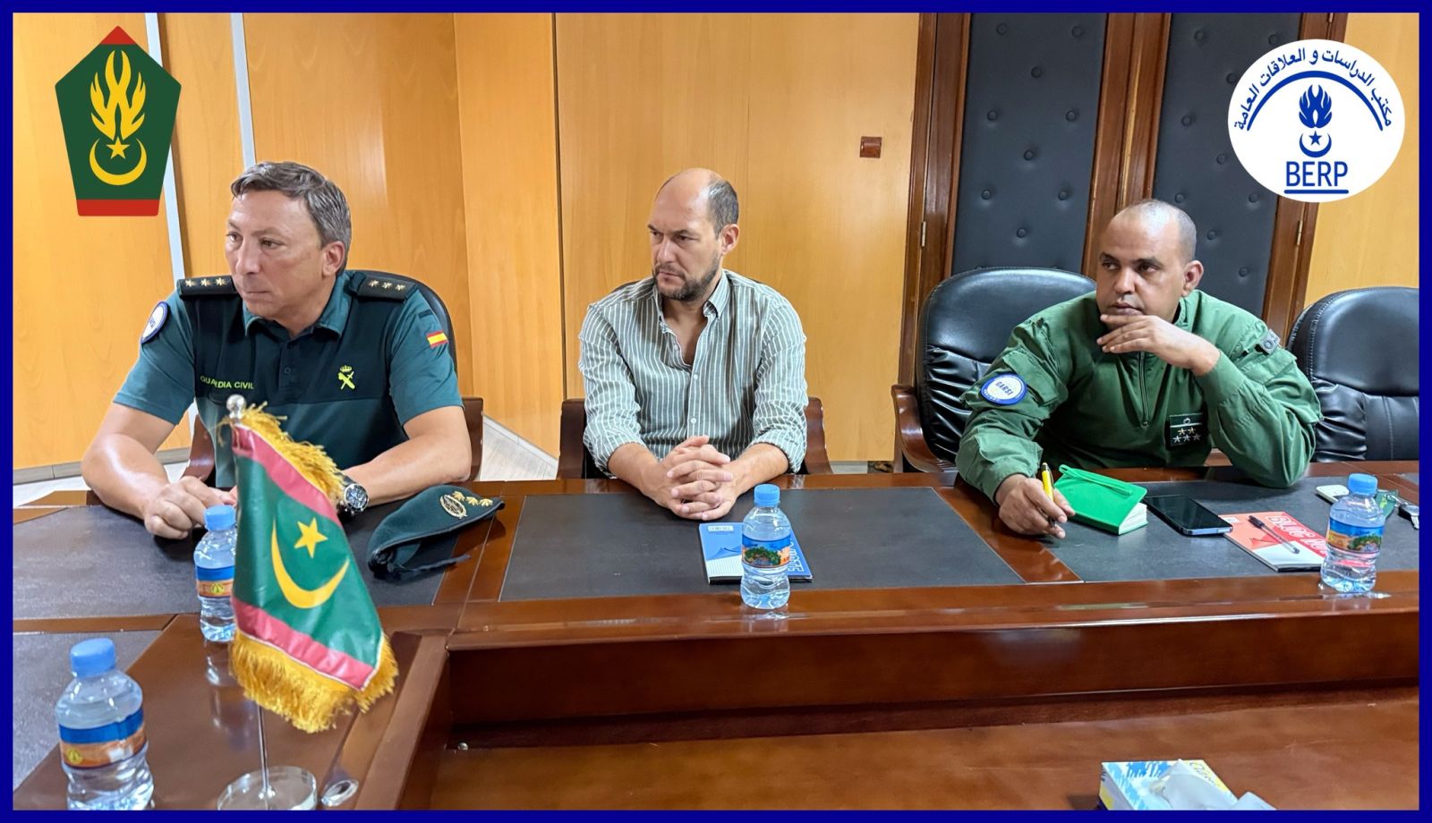 احتضنت قيادة أركان الدرك الوطني في نواكشوط، بحر الأسبوع الجاري، جلسة عمل ضمّت كلا من اللواء محمد ولد عابدين سيدي؛ مدير إدارة المعتمدية، والعقيد ميغال هيرنانديز؛ مدير مشروع GAR-SI، مرفوقًا بالعقيد جوان ميغال؛ منسق المشروع في موريتانيا، والنقيب أسكار رودرييغيز؛ قائد العمليات الميدانية للمشروع، وجيوفاني كويتادامو؛ ممثل مؤسسة التعاون الإسبانية FIIAPP، إلى جانب المقدم نافع ولد الكيحل؛ قائد تجمع الرد السريع التابع للدرك الوطني.
