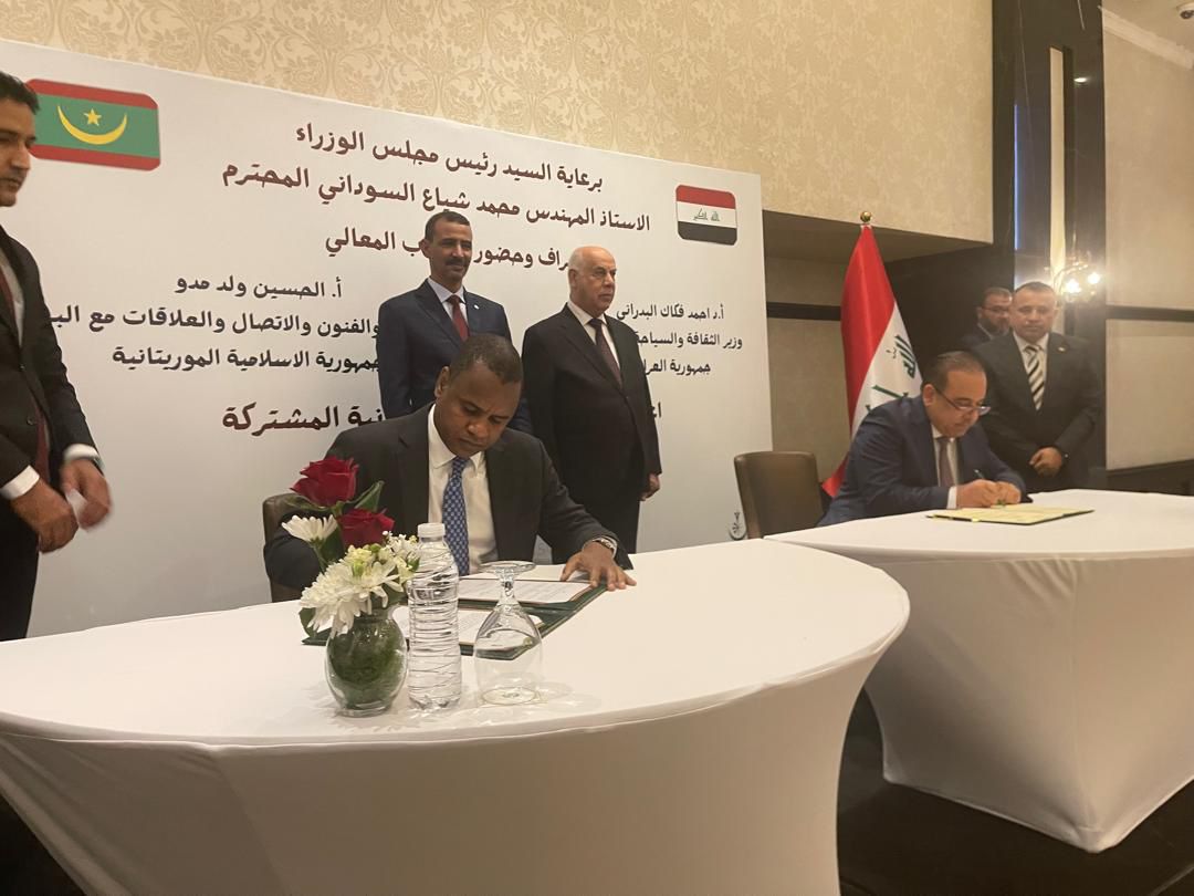 انطلقت الثلاثاء في العاصمة العراقية بغداد تحت الرعاية السامية لرئيس مجلس الوزراء العراقي السيد محمد شياع السوداني اشغال الدورة الثانية للجنة المشتركة الموريتانية العراقية للتعاون ،أفتتحت اعمال اللجنة من طرف وزير الثقافة والفنون والاتصال والعلاقات مع البرلمان، الناطق باسم الحكومة، السيد الحسين ولد مدو، و وزير الثقافة والسياحة والآثار بجمهورية العراق السيد احمد فكاك البدراني،و عبر الوزير الحسين ولد مدو، عن متانة وتجذر علاقات الاخوة والصداقة بين البلدين ، وعلى التطور النوعي الذي تشهده هذه العلاقات في ظل قيادة صاحبي الفخامة رئيس الجمهورية السيد محمد ولد الشيخ الغزواني واخيه الرئيس عبد اللطيف رشيد كما استعرض ولد مدو مناخ الاستثمار المخفز والجاذب في موريتانيا .