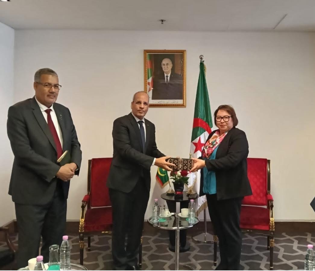 وكان الوزير قد غادر نواكشوط متوجهاً إلى الجمهورية الجزائرية الديمقراطية الشعبية تلبيةً لدعوة من نظيرته الجزائرية لحضور هذا الحدث الوطني الهام.