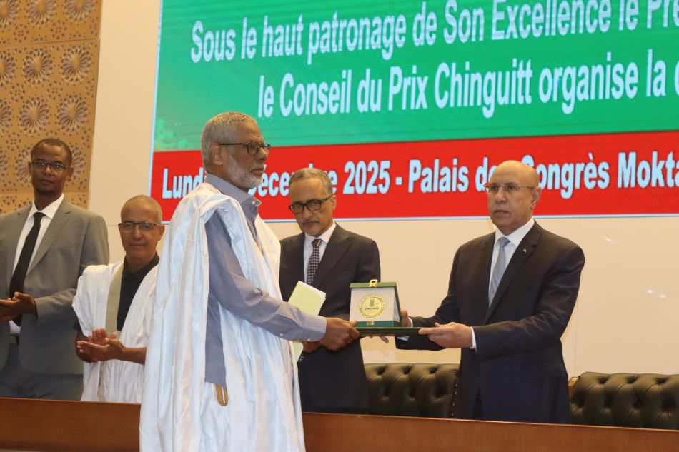 أشرف رئيس الجمهورية، محمد ولد الشيخ الغزواني، صباح اليوم الاثنين بالمركز الدولي للمؤتمرات “المختار ولد داداه”، على حفل توزيع جوائز شنقيط للعام 2025.