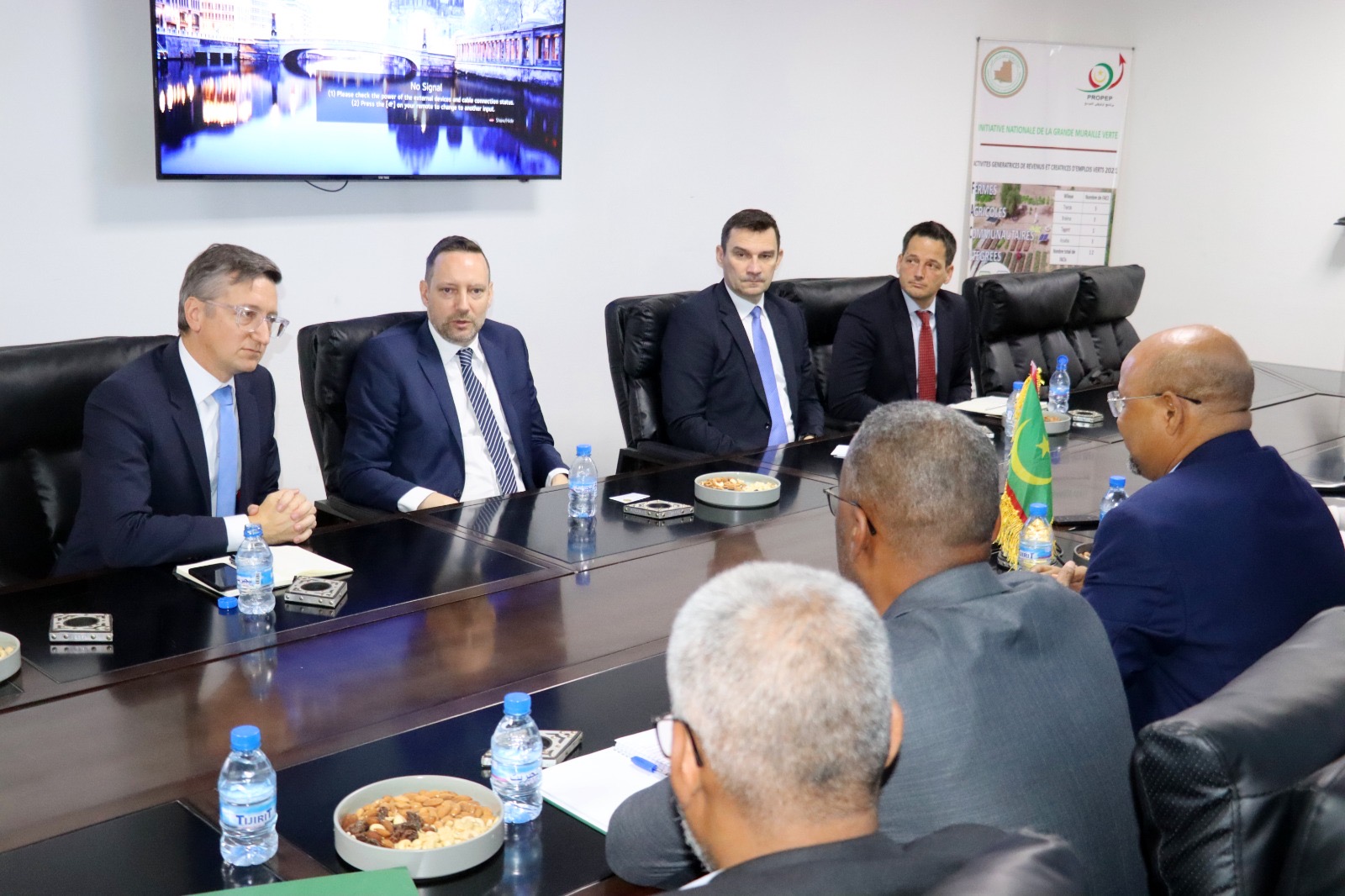 استقبل المدير العام للوكالة الوطنية للسور الأخضر الكبير، السيد سيدنا ولد أحمد اعل، اليوم بمقر الوكالة في نواكشوط، وفدًا رفيع المستوى من جمهورية هنغاريا، برئاسة سعادة تريستان آزبيج، كاتب الدولة بوزارة الخارجية والتجارة الهنغارية، وذلك في إطار تعزيز علاقات التعاون والشراكة في سياق مبادرة السور الأخضر الكبير.