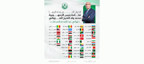 هنأ رئيس الجمهورية، السيد محمد ولد الشيخ الغزواني عددا من الملوك والرؤساء والأمراء، بمناسبة عيد الفطر المبارك، وهذه دولهم: