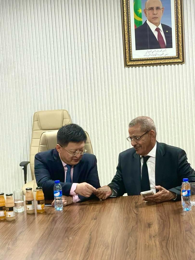 استقبل المدير العام لميناء نواكشوط المستقل، السيد لمرابط بناهي، محاطًا بمعاونيه، سعادة سفير جمهورية الصين الشعبية لدى موريتانيا، السيد تانغ زونغ دونغ، مرفوقًا باثنين من معاونيه، وذلك في إطار زيارة رسمية تهدف إلى تعزيز علاقات التعاون بين الجانبين.
